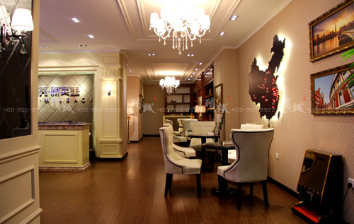 走进品牌中心,迎面扑来一股浓浓的英伦气息,墙上四幅英伦风情的油画,好像在诉说着来自英国的故事;旁边海亮地产布局全国的地图展示,走过25座城市的灯光标记,如同璀璨的星彩,映照着万般的奢靡和流丽的魅影。