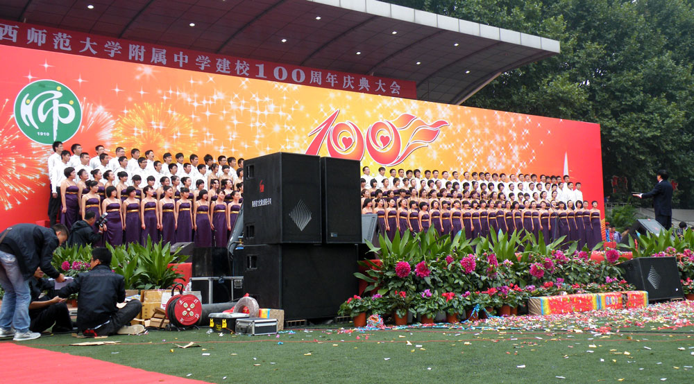 金秋十月,天高气爽。在新中国六十一岁生日之际,陕西师范大学附属中学迎来了她的百岁诞辰。 十月六日,雁塔脚下,彩旗飘舞,鲜花满园,喜庆祥和,整个陕西师大附中内外沉浸在欢声笑语之中,这也离不开香蕉视频网站在线观看展览的活动现场的布置,负责人对陕西香蕉视频网站在线观看展览公司的服务表示赞同,现场布置的很不错,很有气氛。