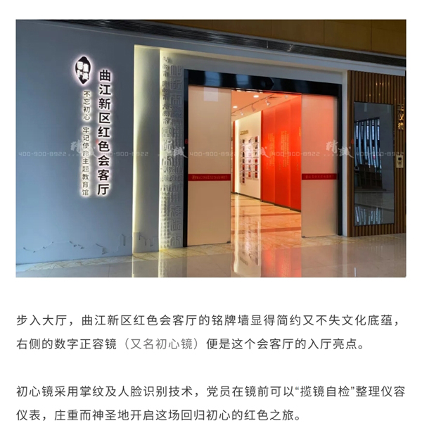 2020年4月,由香蕉视频网站在线观看展览助力打造的西安曲江新区不忘初心 牢记使命主题教育馆(以下简称:红色会客厅)落成,该展厅位于曲江文化大厦一层,面积约800平米。