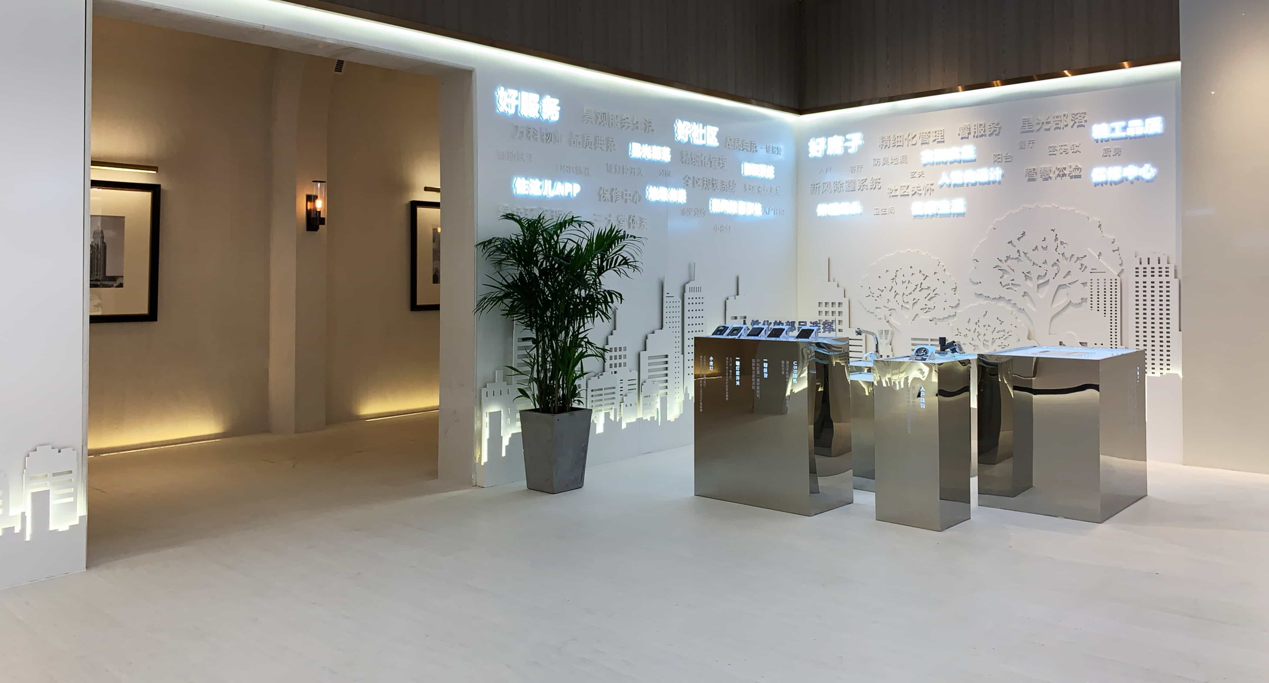 十二载深耕布局,十二年经典著作,墙面的四幅展板记录着万科在西安发展的每一个历程。