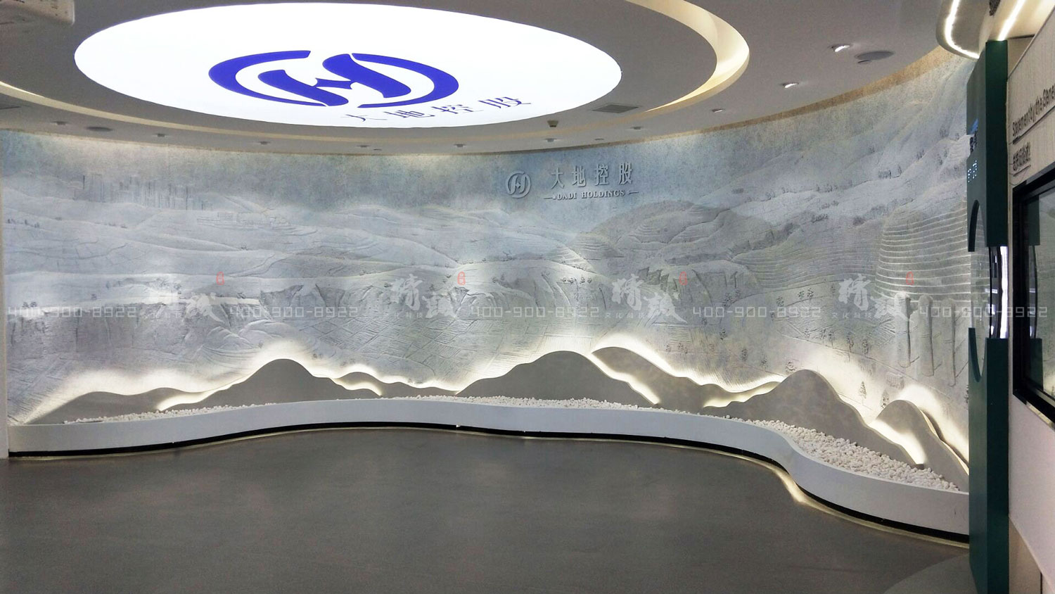 香蕉视频网站在线观看展览打造的山西大地环境投资控股有限公司企业展厅,把绿水青山理念融入整体设计风格,以土地改造理念贯穿整馆。