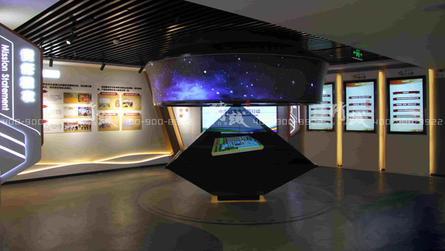 采用360全息成像技术,顶部蓝天装饰,以多媒体表现手法,呈现集团所属公司及重点项目发展。