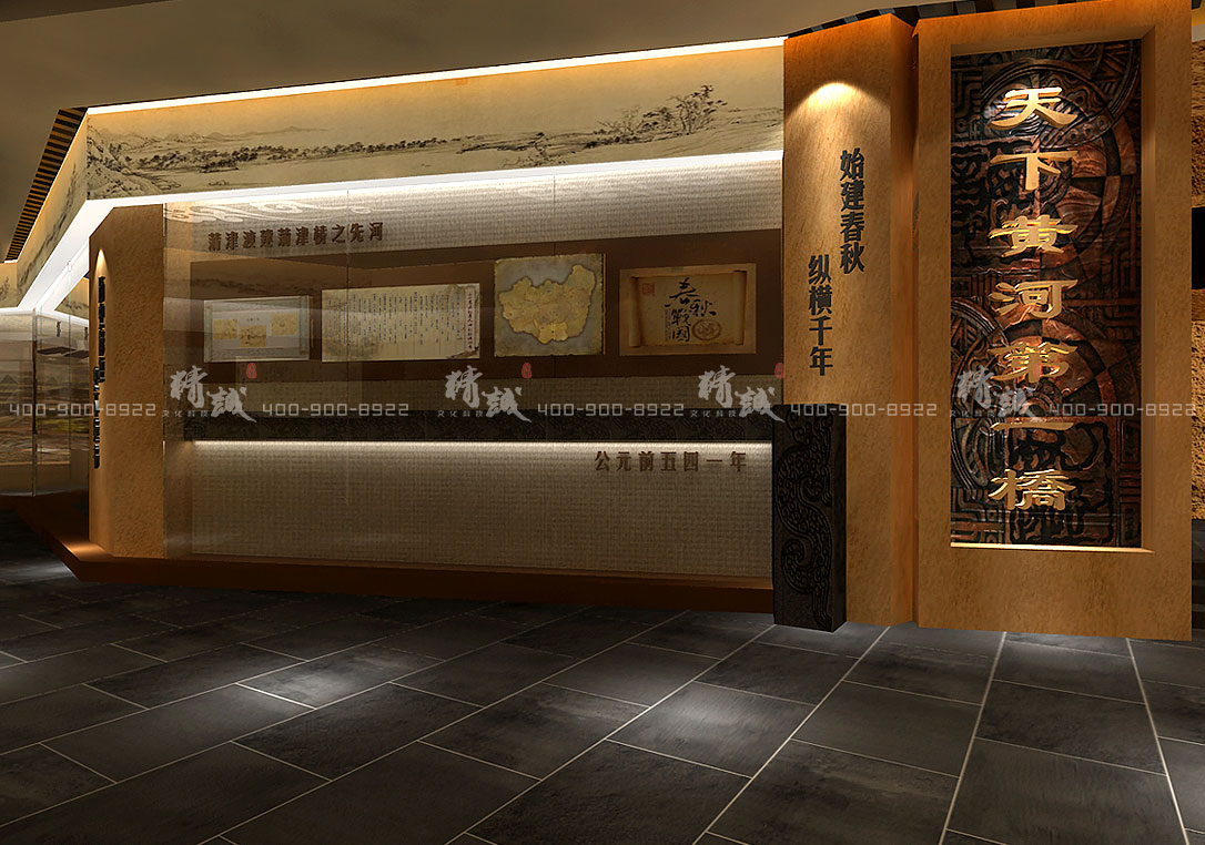 根据展厅的建筑结构,将整体展示划分为六大空间:序厅、天下黄河..桥、唯我独尊铁牛锚、文物保护新成果、亲切关怀与支持和不可再生惜文物。