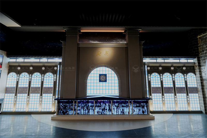 如延安火车站的展示,就采用场景还原结合数字多媒体的方式进行了展现,底部视频生动呈现了延安火车站1天24小时人流穿梭的画面,带给参观者身临其境的感受。