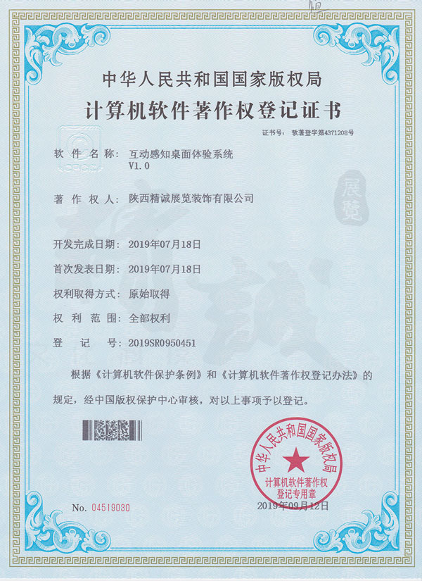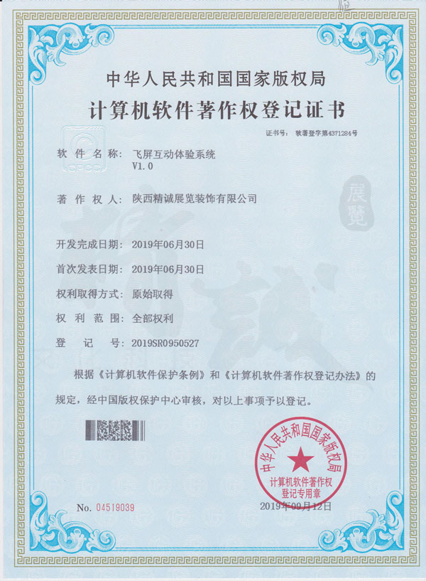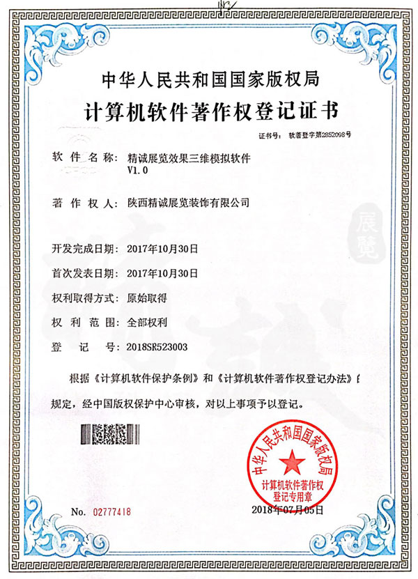 - 陕西香蕉视频网站在线观看展览装饰有限公司计算机软件著作权登记证书 -